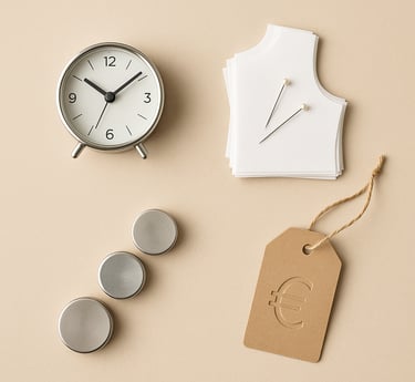 Convierte horas internas en coste directo y predecible. Suma el precio del patrón al de la prenda y aplica el margen de tu taller.