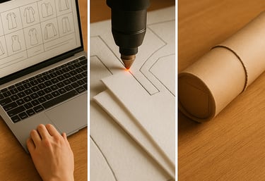 Recibirás las piezas cortadas a láser, etiquetadas y con sentido del hilo, listas para coser.